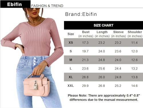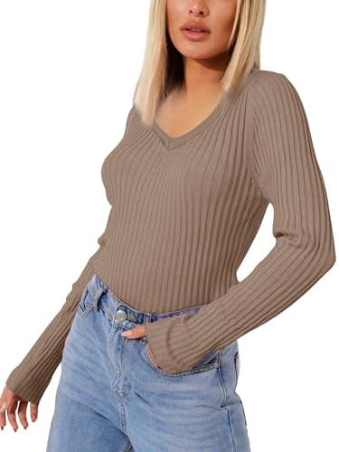 Ebifin Langarmshirt V-Ausschnitt Damen Pullover Casual Sweater Einfabrig Tops Warm Strickpullover Basic Oberteile.